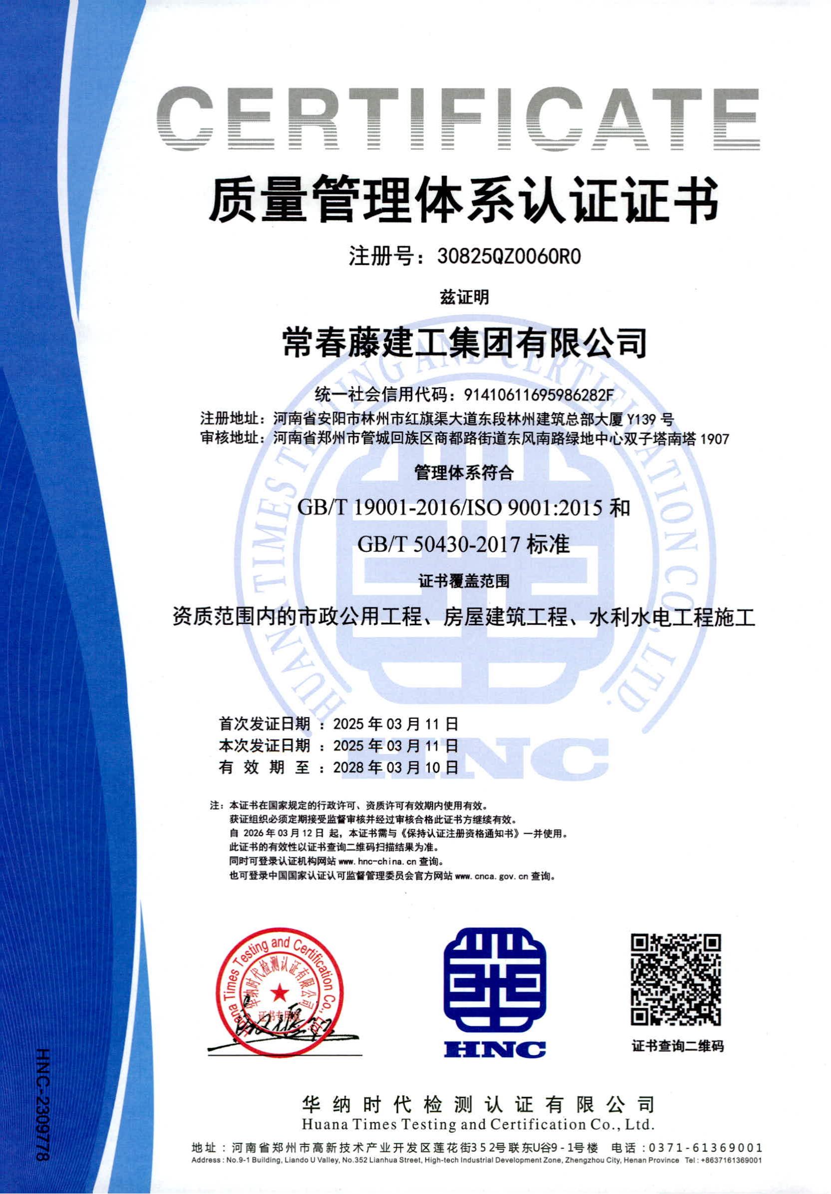 三体系认证证书