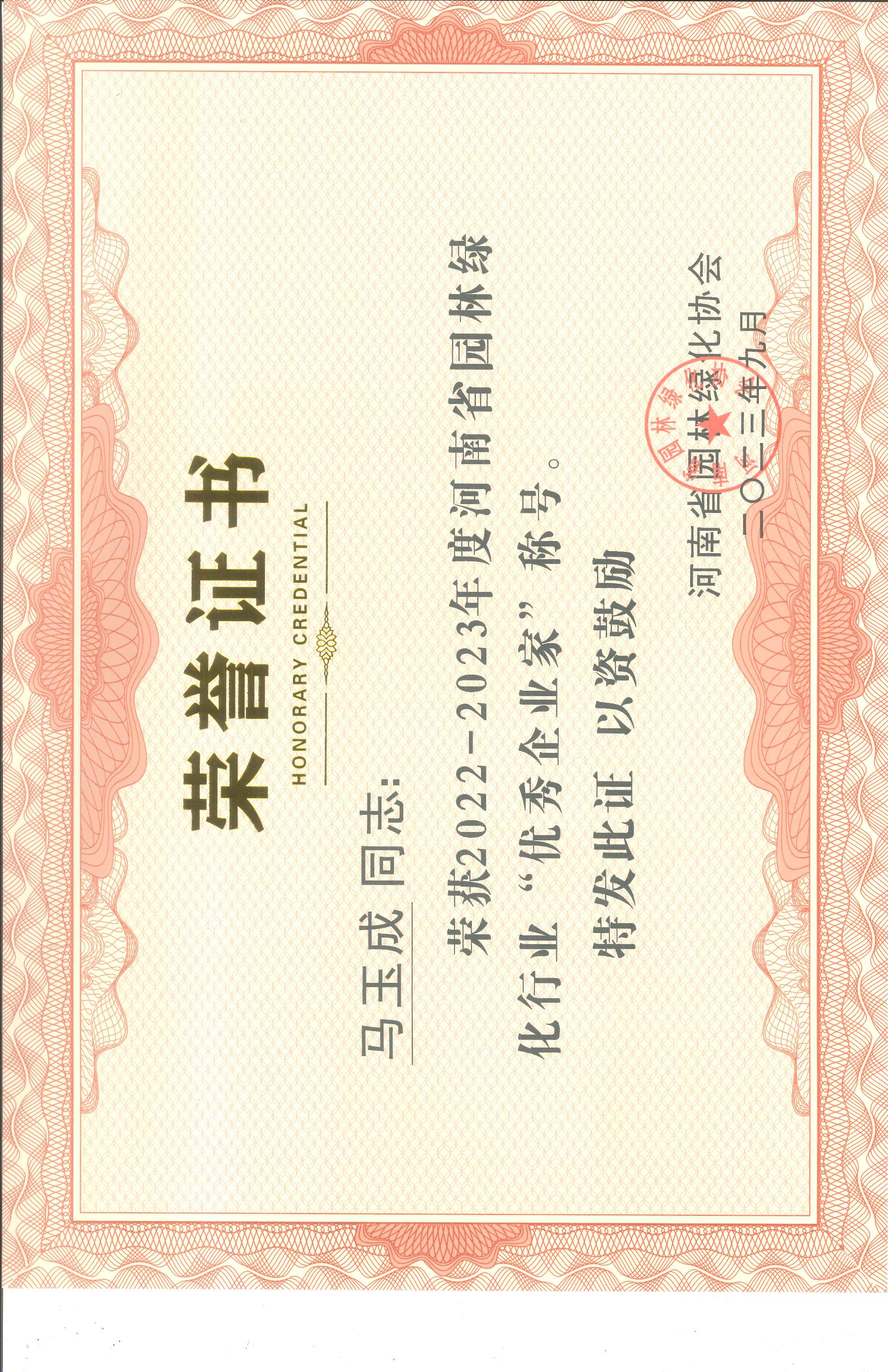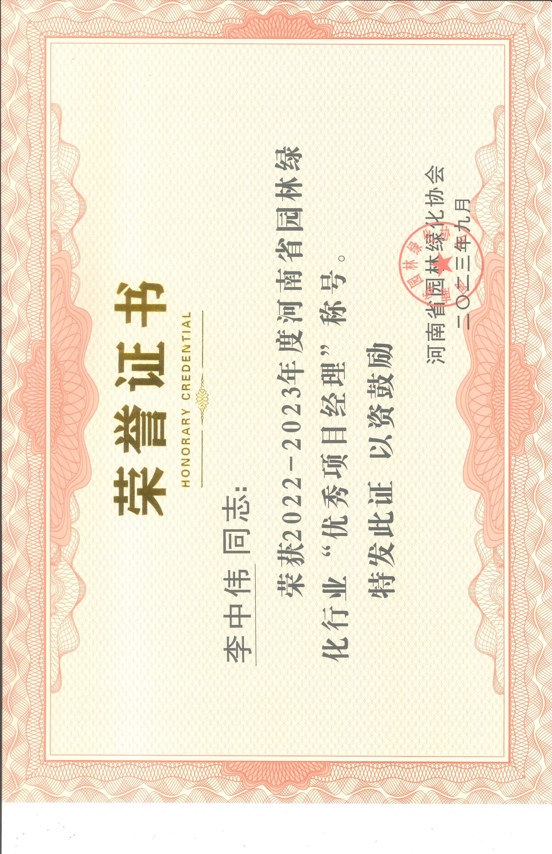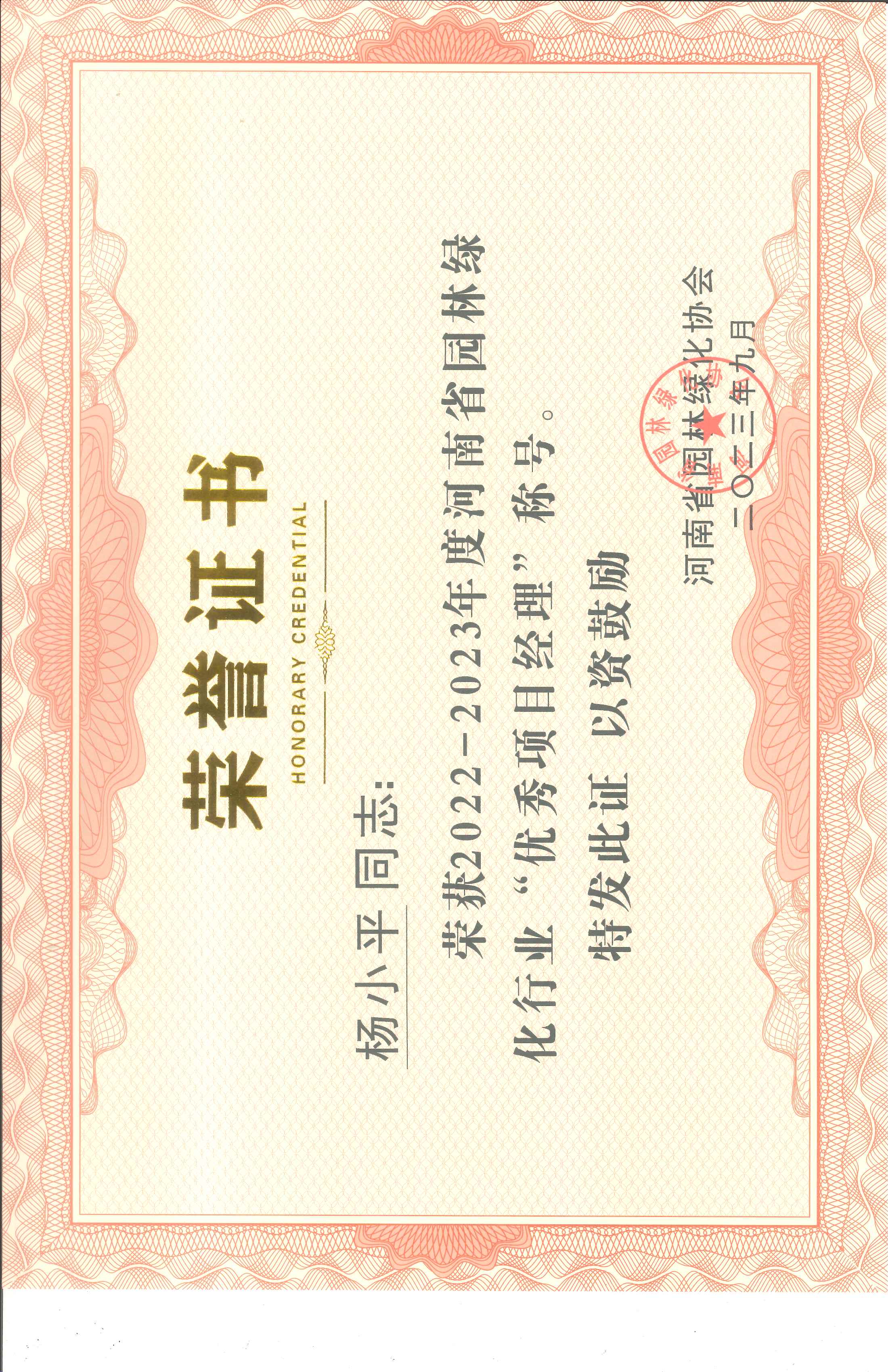 2022年度河南省园林绿化行业先进企业及优秀项目经理